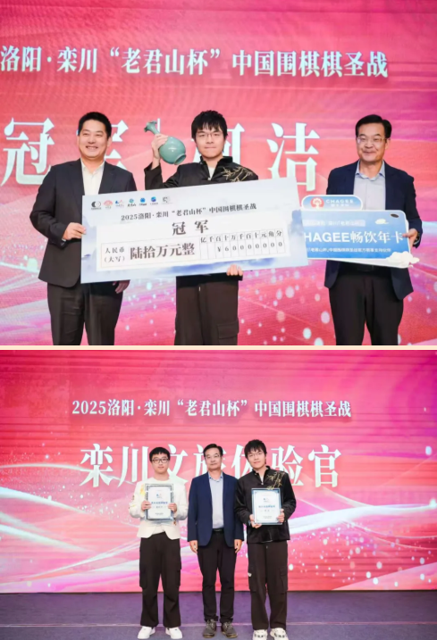 颁奖仪式赛后在栾川伏牛山干部学院进行,中国围棋协会主席常昊、中共栾川县委书记曲万涛为冠军柯洁颁奖,洛阳市体育局党组书记、局长赵红飞,河南大象融媒体集团党委书记、董事长张建生为亚军屠晓宇颁奖,栾川县赠予柯洁、屠晓宇“栾川文旅体验官”称号。
