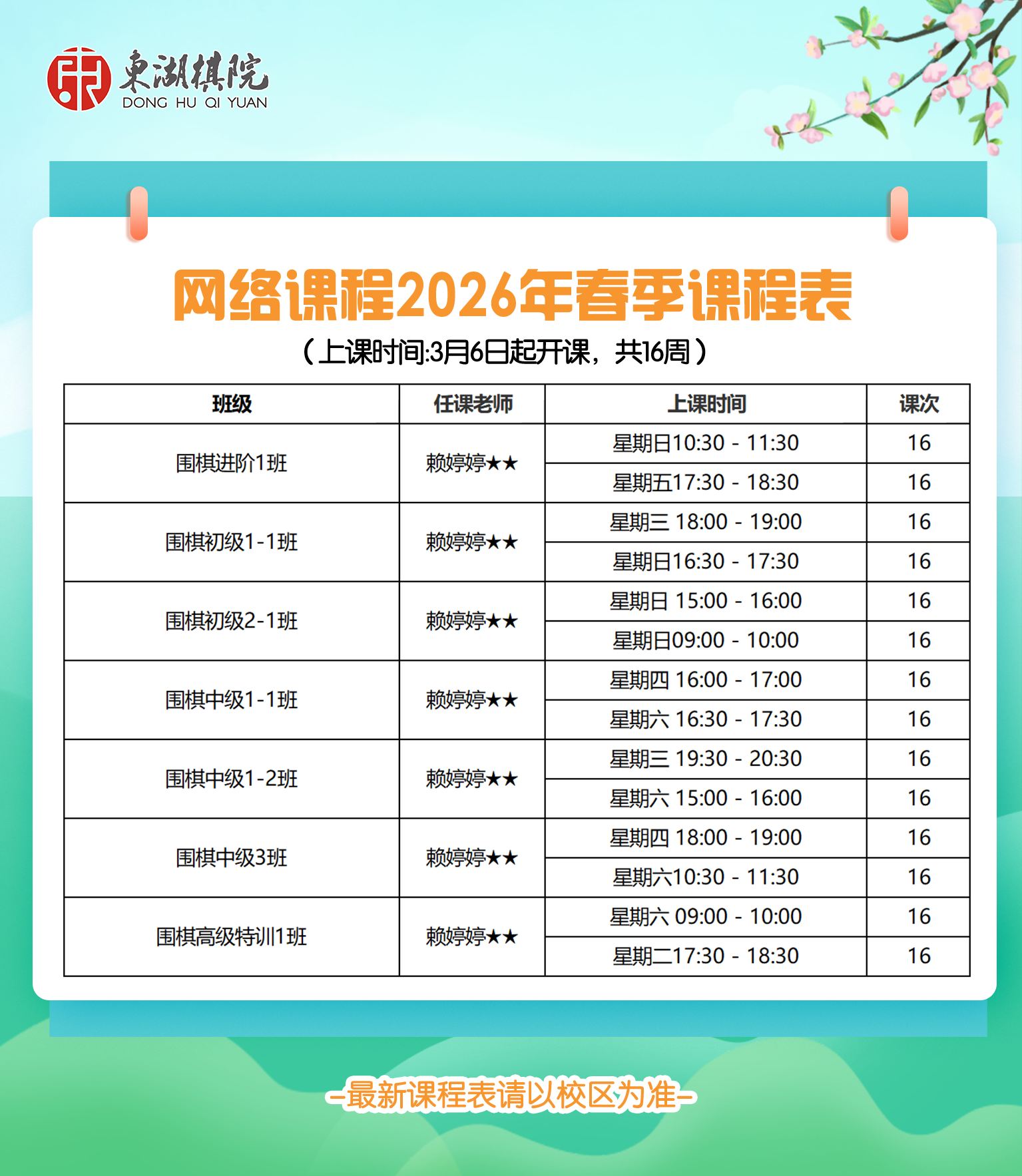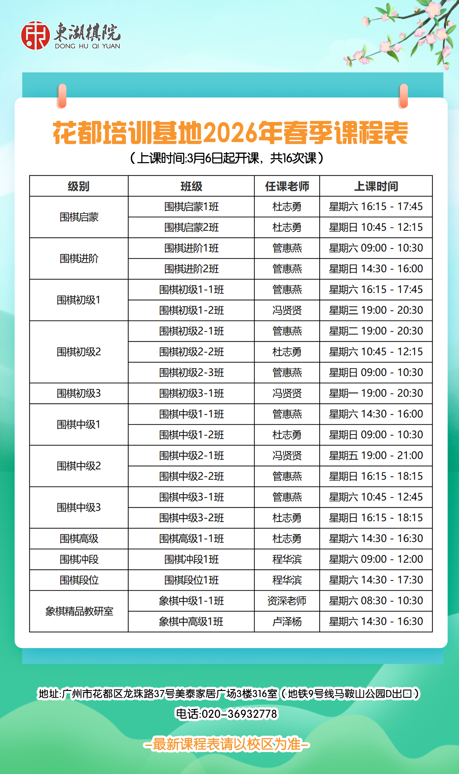 【花都区/线上】花都、网络课程培训基地2026年春季班课程表