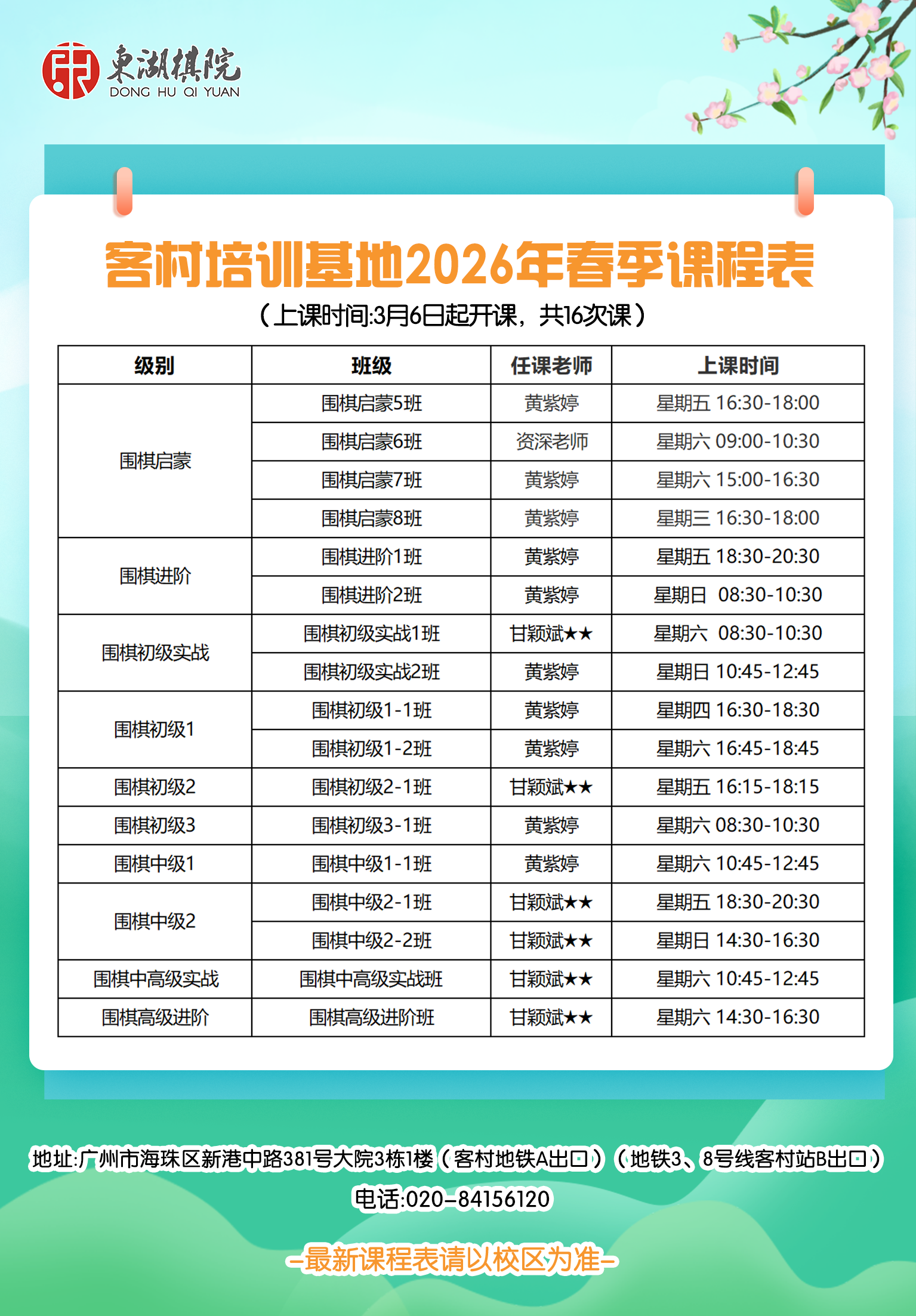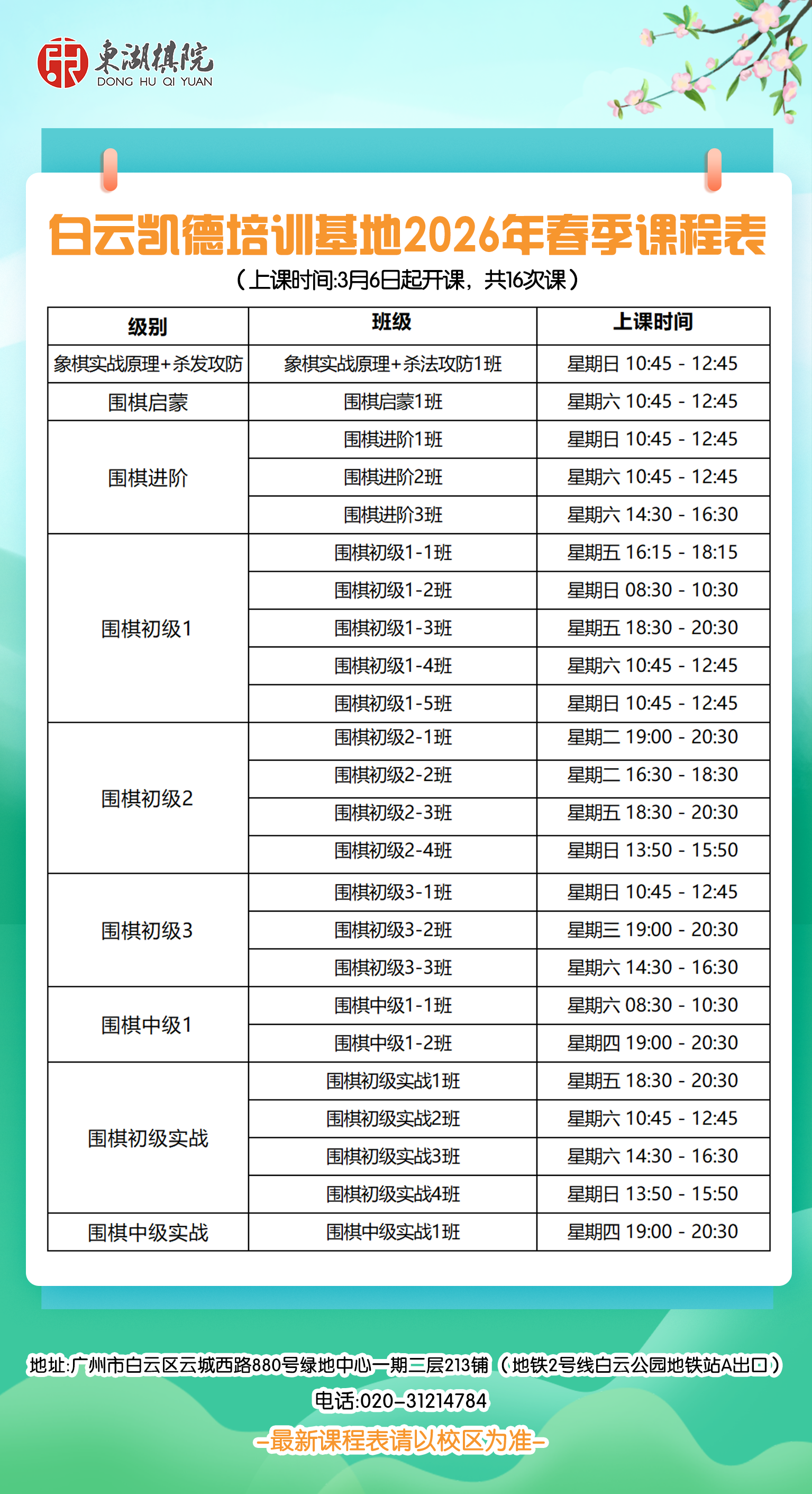 【海珠/白云区】客村、江南大道、白云凯德培训基地2026年春季班课程表