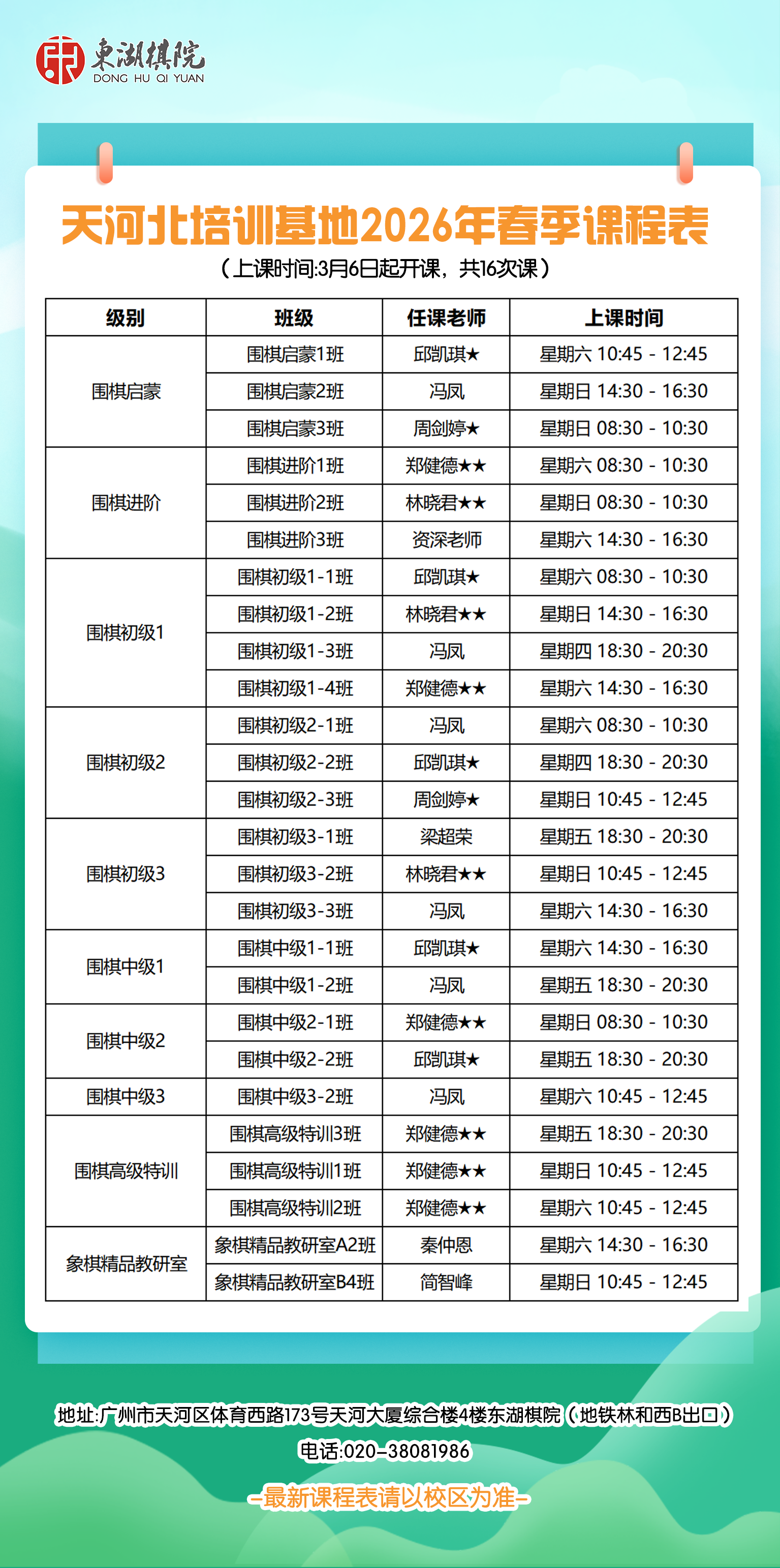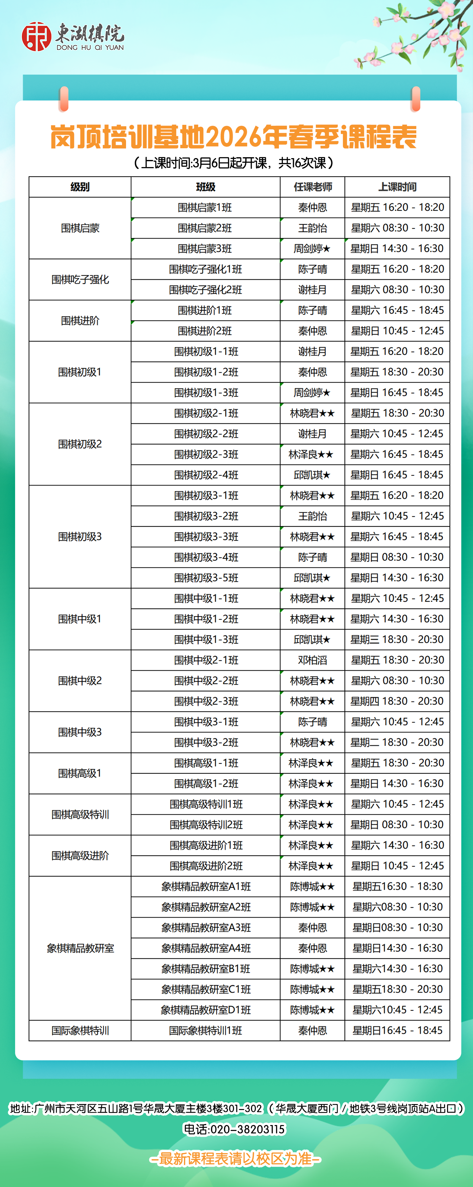 【天河区】岗顶、珠江新城、天河北、奥体培训基地2025年春季班课程表