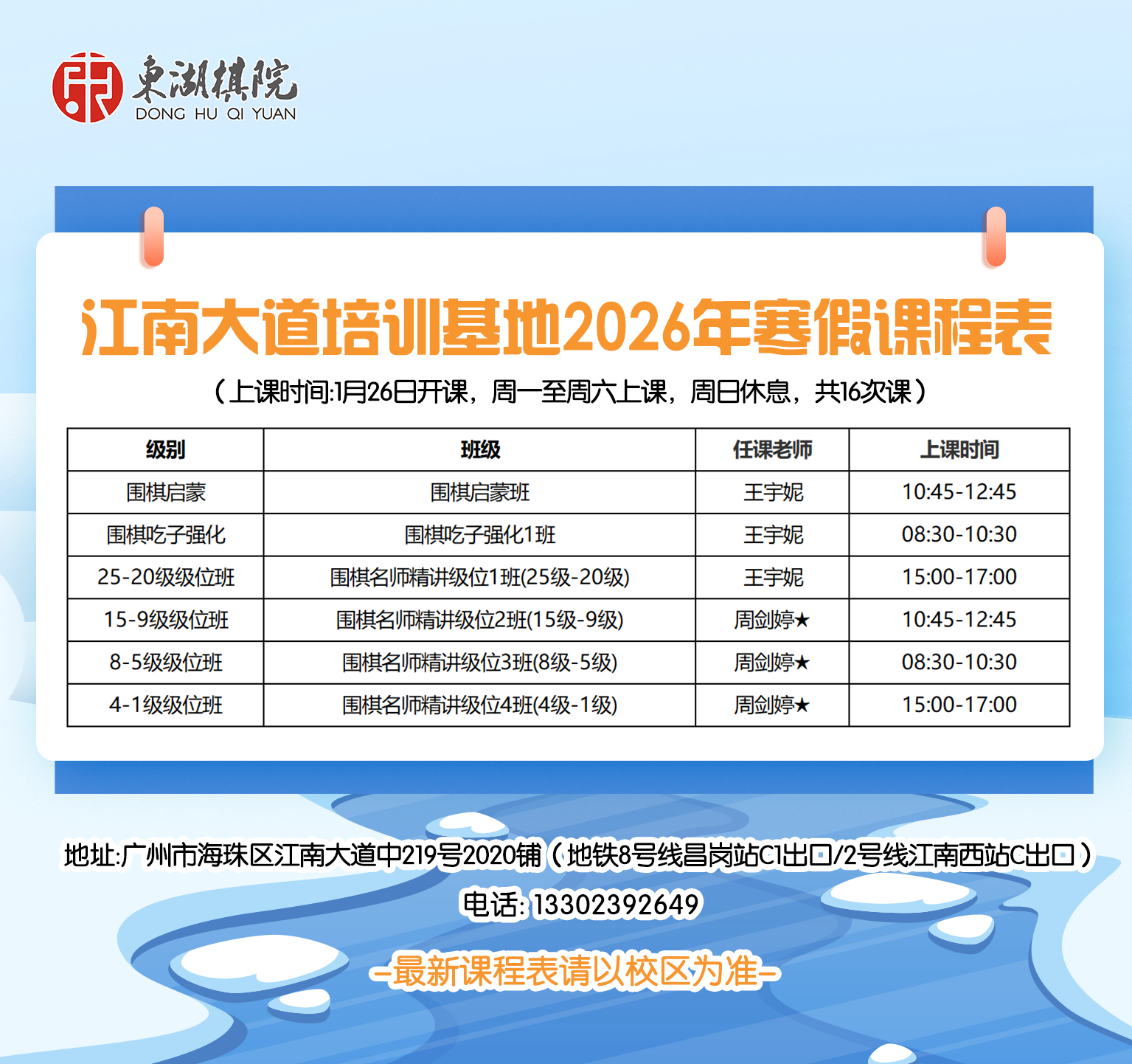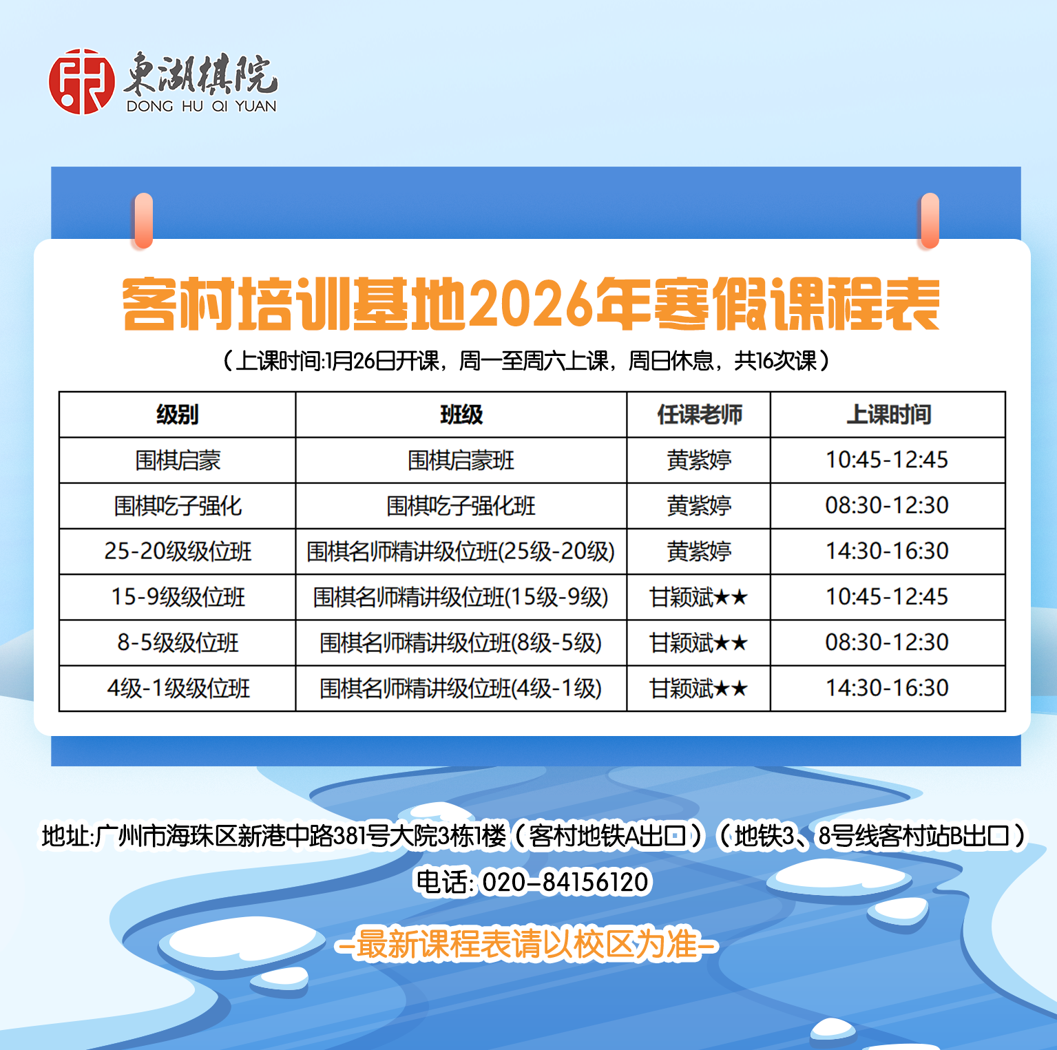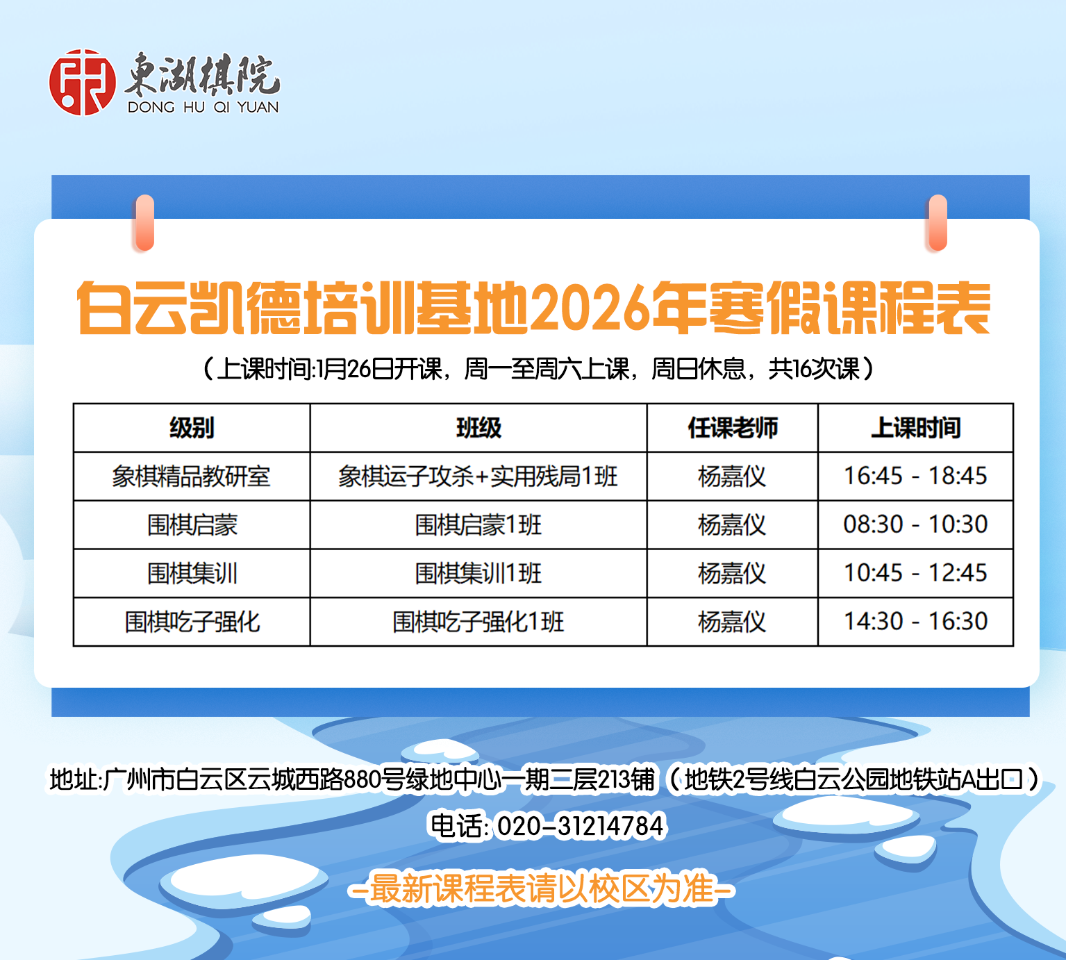 【海珠/白云区】客村、江南大道、白云凯德培训基地2025年寒假班课程表