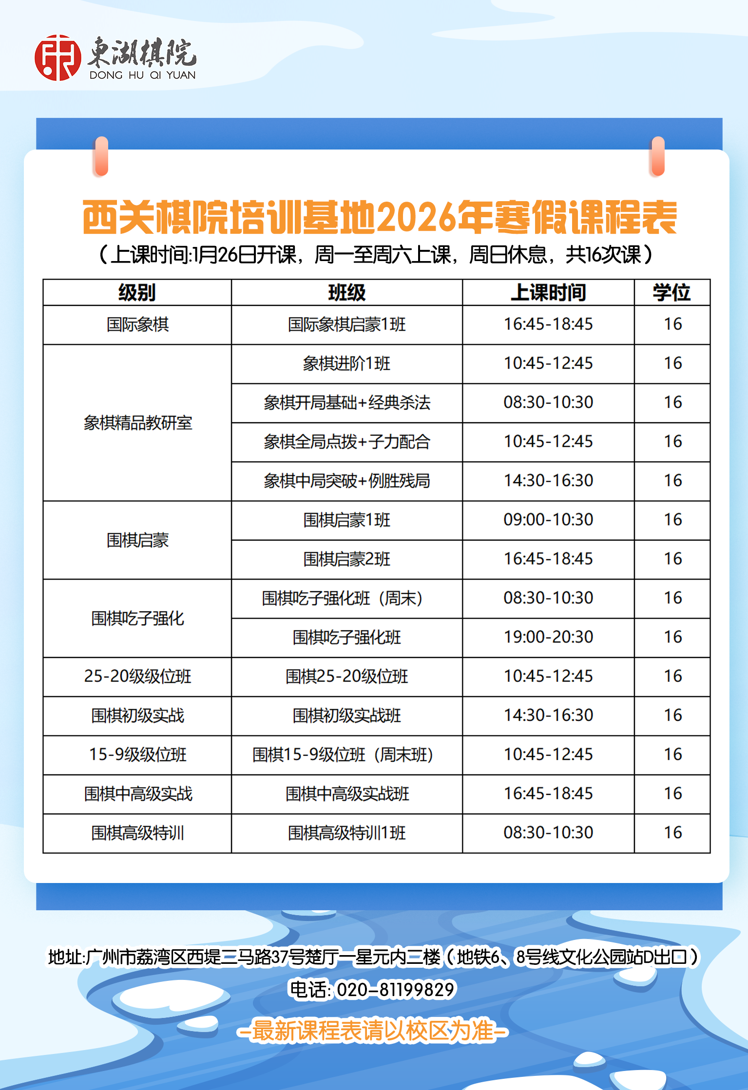 【荔湾区】西关、中山八、西村、广钢金茂府、广钢中海花湾培训基地2025年寒假班课程表