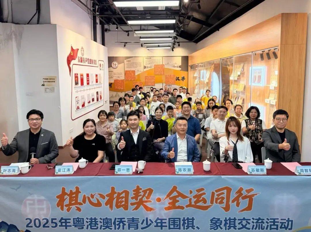 11月1日下午,由广东侨界青年联合会、广东棋文化促进会主办,广东东湖棋院(西关棋院)承办的“棋心相契·全运同行——2025年粤港澳侨青少年围棋、象棋交流活动”在广州市荔湾区棋文化国粹馆成功举行。广东省侨联副主席、广东侨界青年联合会主席陈农灏出席活动并致辞,来自粤港澳地区和海外的侨界青少年、棋艺名师及相关单位代表共约60人参与交流。