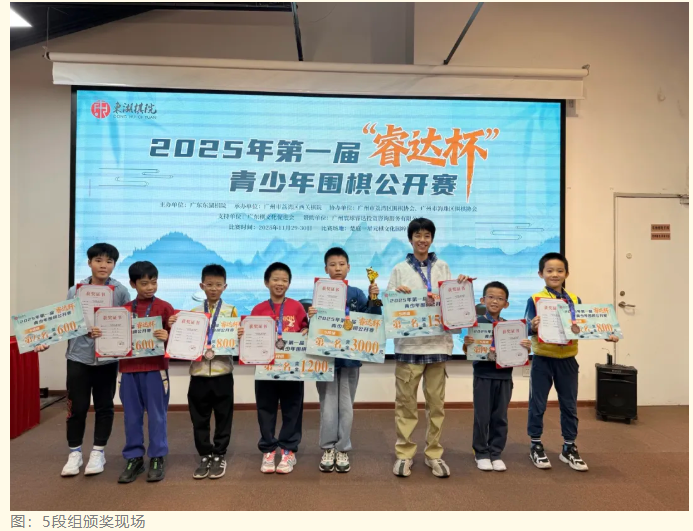 2025年第一届“睿达杯”青少年围棋公开赛已于11月30日圆满落幕。来自各地的3段至5段选手齐聚一堂,展开多轮激烈角逐。赛事汇聚众多青少年围棋高手,竞争氛围浓厚,尤其在水平最高的5段组别中,选手之间棋逢对手、胜负难分,展现出精湛的棋艺与顽强的竞技精神。