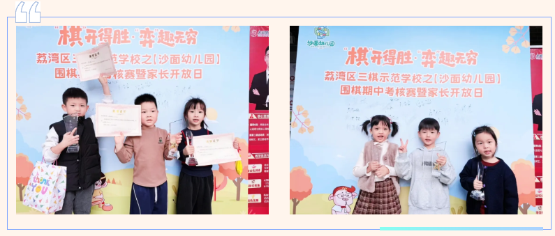 本次赛事作为荔湾区“三棋进校园”的落地实践,通过西关棋院(广东东湖棋院)与沙面幼儿园的资源联动,构建起“趣味启蒙-专业指导-赛事检验”的完整闭环。“三棋进校园”一定会持续做好多元化活动,让更多孩子在方寸棋盘间收获专注力、抗挫力与逻辑思维的全面提升。