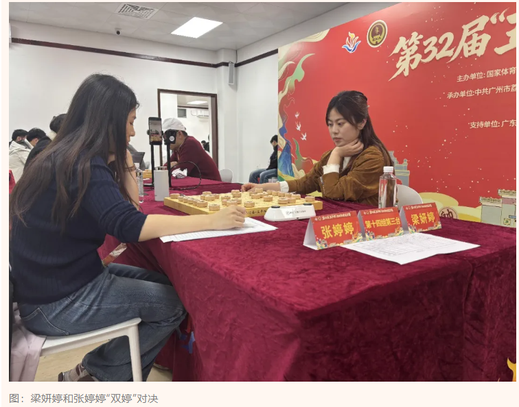 女子组梁妍婷和张婷婷“双婷”对决,在第一局战和的情况下,第二局双方以中炮对反宫马拉开战幕,中局梁妍婷急于求成,贪吃一象,被张婷婷反手车马炮联攻,一举破城。张佳雯和唐丹的争夺中,小将张佳雯中炮开局率先发起进攻,虽然中局不敌落败,也展现了年轻棋手不畏强手、敢打敢拼的战斗精神。