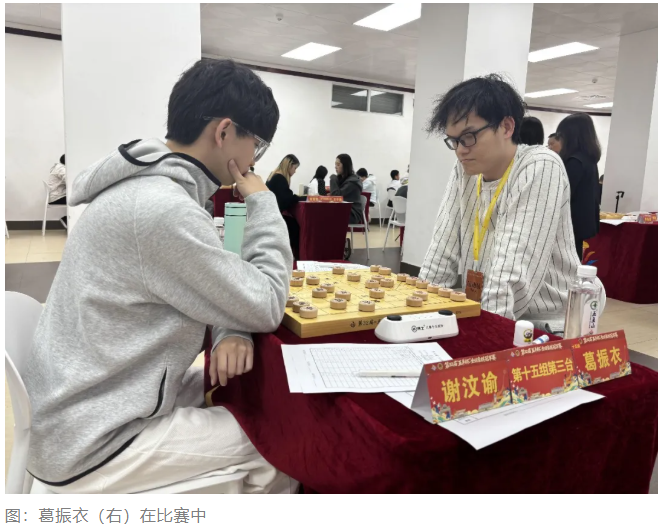 7岁时,一次偶然的机会,葛振衣与同学下起了象棋,从此便深陷其中,一步步走入象棋的世界。葛振衣的棋风如同他内敛的性格,稳健保守,“我比较胆小,下棋时会先巩固自己的阵型,确定不会输之后,再稳步推进寻找取胜机会。”这种谨慎的风格,让他在本次五羊杯第一轮赛事中,历经一波三折,最终幸运地战胜了同为台湾代表的谢文郁。不过谈及这场比赛,葛振衣略感遗憾:“单败淘汰制下,谁也不想送自己的队友回家。”