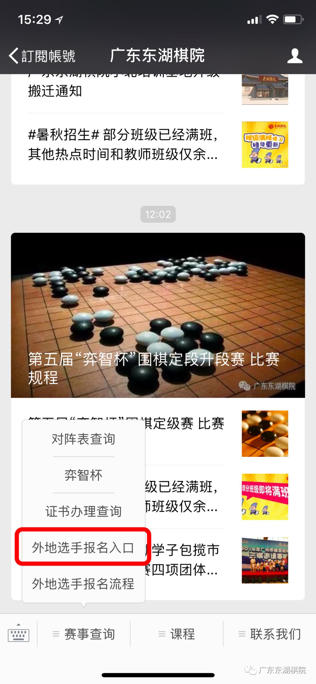 1.点击公众号菜单栏-----外地选手报名入口